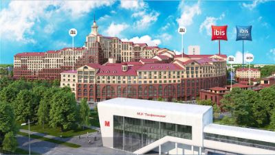 В соседнем корпусе находится гостиничный комплекс из 2 отелей французской сети Ibis, рядом - 3 деловых центра, через дорогу - отдельно стоящее здание фитнес-центра с бассейном (скоро планируется открытие в премиум-формате), открытые спортивные площадки с теннисным кортом. Комплекс полностью сдан в эксплуатацию и заселен на 90%. В МФК Маршал 772 квартиры и 235 апартаментов, 3 ДЦ, 2 отеля.
