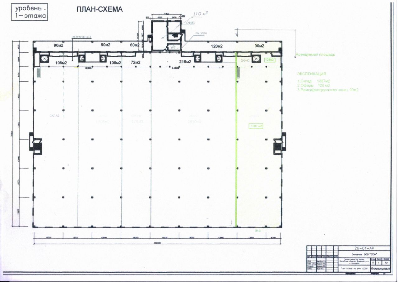 Сетка колонн 12 х 12 м на 1ом эт.,и 12х24 м на 2ом.эт.