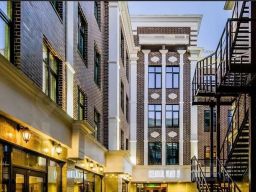 Офис очень светлый: имеет большие окна с видом на внутренний двор и высокие потолки.