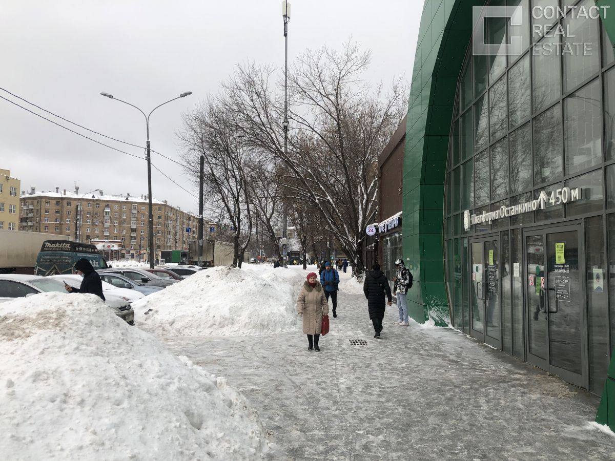Помещение площадью 68,7 кв.м, находится возле центрального входа в ТЦ. ТЦ расположен на первой линии в 100 м от станции метро Бутырская и от ж/д станции Останкино суточный пассажиропоток метро 50 000 человек.