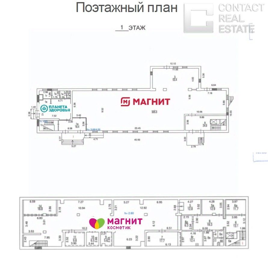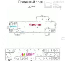 На продажу предлагается отдельно стоящее здание с арендатором Магнит + Магнит Косметик и аптека Планета Здоровья. Площадь: 1 этаж 459,3 кв. м: подвал 374,4 кв. м.Супермаркет Магнит + Магнит Косметик: ДА от 20.06.17 на 10 лет. МАП 1,5 млн р. Аптека: ДА до 31.03.25 г. МАП 319.070 р. Общий МАП 1.819.070 рЗемельный участок 1608 кв. м, в аренде у Города до ноября 1965 года. [Лот #19977]