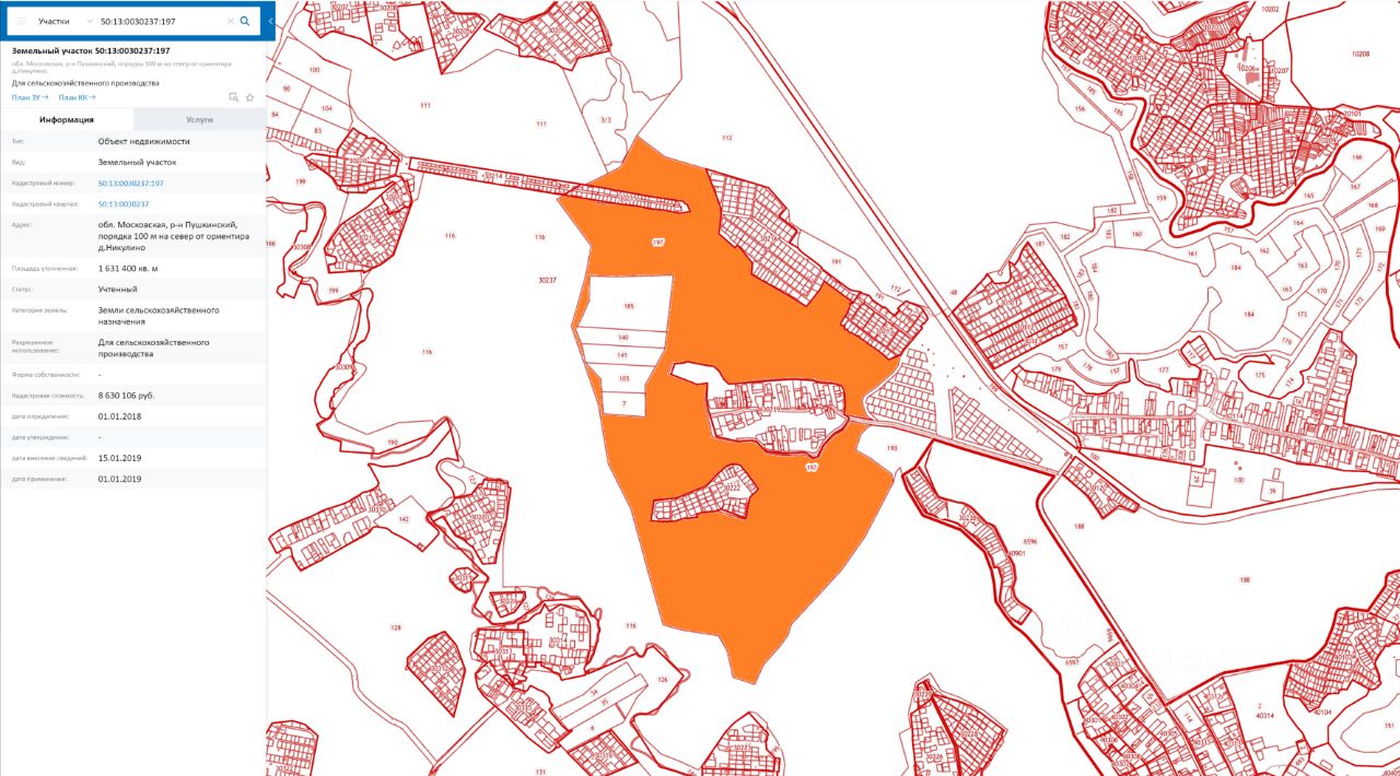 Предлагается земельный участок. Внутри участка расположен посторонний глиняно-песчаный карьер, работа которого остановлена. Отвесные стены карьера ограничивают полезную площадь участка ввиду угрозы сползания (смыва) объектов внутрь карьера. Дополнительно полезная площадь уменьшается из-за дорог, проездов, болотин, коммуникаций. В центре участка расположена деревня Никулино, к которой протянута асфальтированная дорога. Прочая инфраструктура отсутствует. Половина участка - поле и лес - подходит для организации ИЖС и СНТ.