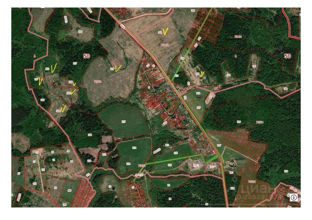 Продаются земельные участки сельскохозяйственного назначения в д.Бухолово и Кобылино, г.о.Шаховская, Московской области (на картинке отмечены желтым цветом).