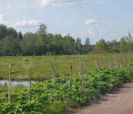 Расположен в 180м от асфальтированной дороги через поле (на участке деревья, которые на фото ЗА полем).