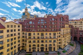 В соседнем корпусе находится гостиничный комплекс из 2 отелей французской сети Ibis, рядом - 3 деловых центра, через дорогу - отдельно стоящее здание фитнес-центра с бассейном (скоро планируется открытие в премиум-формате), открытые спортивные площадки с теннисным кортом.