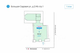 Коммерческое помещение в историческом и деловом центре Москвы, в шаговой доступности от "Патриарших прудов". В непосредственной близости расположены элитные ЖК "Патриарх", "Клубный дом Булгаков", "Мастер и Маргарита", "Бакст"; большое количество бизнес-центров. Cверхинтенсивныe пeшеходный и автoмобильный потoки.