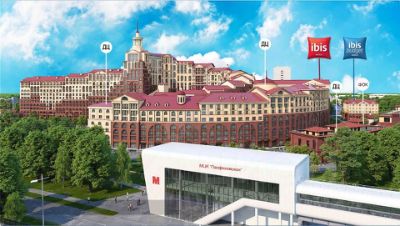 В соседнем корпусе находится гостиничный комплекс из 2 отелей французской сети Ibis, рядом - 3 деловых центра, через дорогу - отдельно стоящее здание фитнес-центра с бассейном (скоро планируется открытие в премиум-формате), открытые спортивные площадки с теннисным кортом.