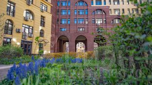 Установлены окна от известного производителя, из которых открывается вид на благоустроенный внутренний двор с красивым ландшафтным дизайном.