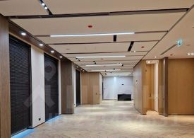 Отделка: потолок звукопоглощающие и декоративные панели; стены шпонированные панели и краска белая; пол стежка, инженерная доска.