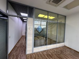 54 м2 разделен на три отдельных кабинета, светопрозрачными стеклянными перегородками. С панорамным окном на улицу.