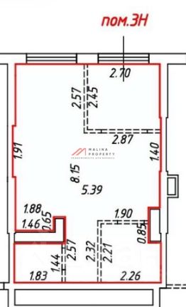 Общая площадь 41.3 м2. 1 этаж. Отдельный вход с первой линии улицы, витринное остекление. Высокие потолки. Состояние - под отделку.
