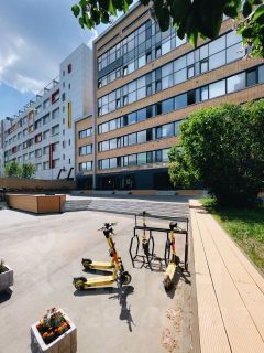 На внутренней огороженной территории наземная парковка до 20 м/м и бесплатная городская парковка более чем на 100 м/м.