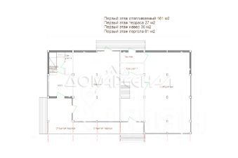 1 этаж: КПП 7,8 кв.м с отдельным входом из КП, комната охраны 5,4 кв.м с санузлом 2,5 кв.м, помещение под магазин 50,2 кв.м с отдельным входом с улицы, общий зал 57,2 кв.м с техническим помещением 3,7 кв.м с выходом на улицу, лестничный холл 16,5 кв.м, санузел 3,8 кв.м. Большая открытая терраса.