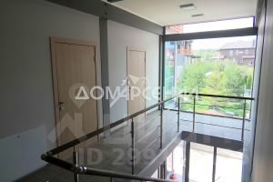 Несущие - клееный брус 300х300 (технология фахверк с запилами на компьютере в заводских условиях). Пол керамическая плитка, все полы с водяным обогревом. Все освещение светодиодное 3000К, светильники вмонтированы в потолок. Кладовая, лестница с перилами из дуба, большая терраса 50 кв,м на втором этаже под навесом. 3 входа в здание с трех разных сторон, отдельный вход с улицы в помещение топочной. 2 котла газовый и электрический. Панорамные окна в пол (энергосберегающие - мультистекло, двойной стеклопакет).