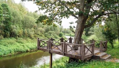 Участок окружен хвойным лесом, имеет собственный пляж на реке Дубна, также на территории имеется свое озеро.