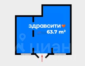 Помещение 63,70 м2, располагается на 1 этаже, открытая планировка, один отдельных вход, витринные окна по фасаду. Парковка перед фасадом. Место для размещения рекламы. Электрическая мощность 12,8 кВт.