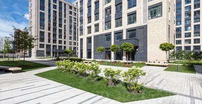 На первых этажах расположены помещения свободного назначения с панорамными окнами и отдельными входными группами..
