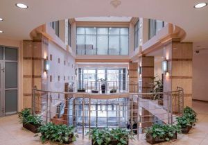 Здание бизнес-центра "Европа Билдинг" оснащено современной техникой и средствами коммуникации по последнему слову инженерной мысли, автоматизированными системами жизнеобеспечения, имеет развернутую внутреннюю инфраструктуру, обеспечивающую широкий спектр услуг на самом высоком уровне, и по своим характеристикам в полной мере соответствует престижному классу "А". Коэффициент эффективности площади в бизнес-центе составляет 92%. Эффективно спланированные на основе принципа открытой планировки офисные помещения расположены на 14 этажах, из которых открывается неповторимый панорамный обзор города. Атриум, богатая входная группа, парадная лестница, террасса с летним садом, витражи. Конструктивные особенности: высота потолков - 3,3 м., открытая планировка этажа 900-1200 кв.м..