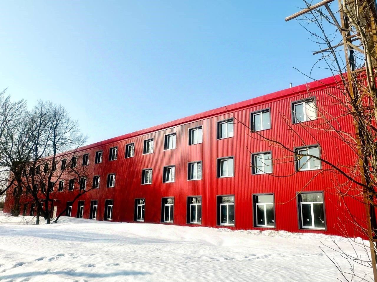 - Административно-бытовое трехэтажное помещение (Состоит из офисов, бытовых комнат и общежития с комнатами для проживания, душевых/санузлов + столовая с кухней). Каждый этаж 60х10м.
