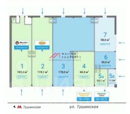 Помещение располагается у метро и МЦД Тушинская, а также у большой промзоны, что обеспечивает сверхинтенсивный пешеходный трафик. В двух минутах автобусная остановка. Возле здания парковка.