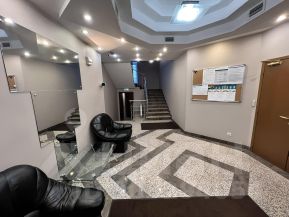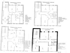 Здание 742м2. 1,2,3 этажи, мансарда и подвал. Все этажи функциональны, имеют окна, без несущих перегородок. В подвале кухня, столовая, кабинеты. Участок аренда до 2047г. Своя наземная парковка на 4-5 м/мест.