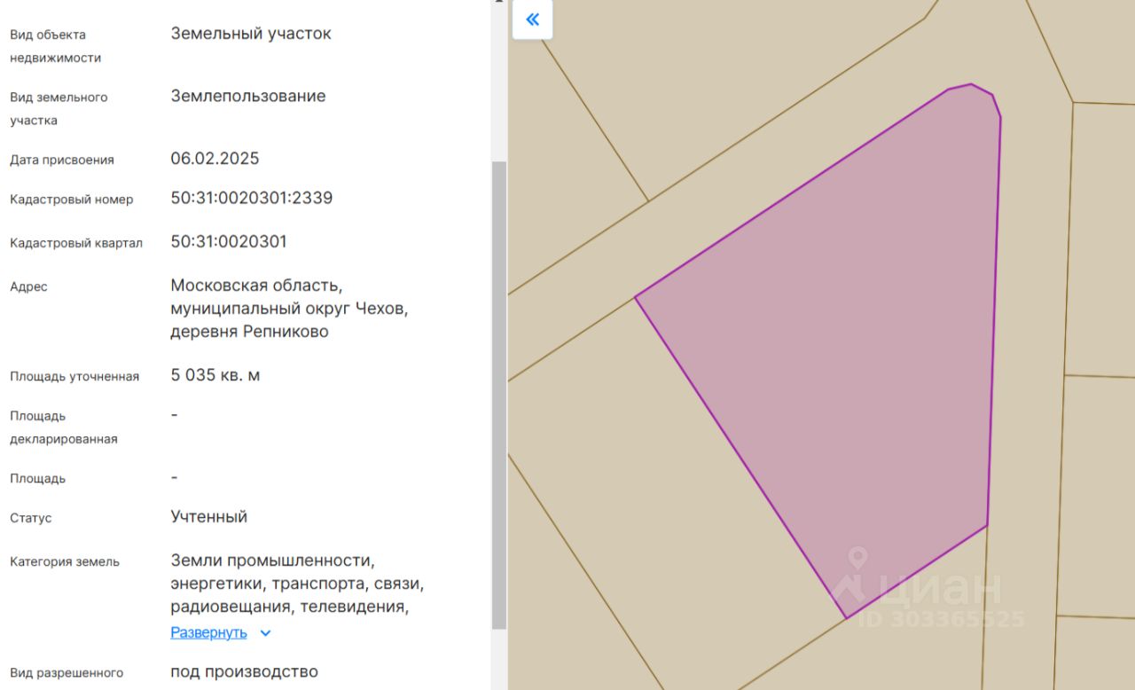 Кадастровый номер 50:31:0020301:2339. (есть выбор других участков)