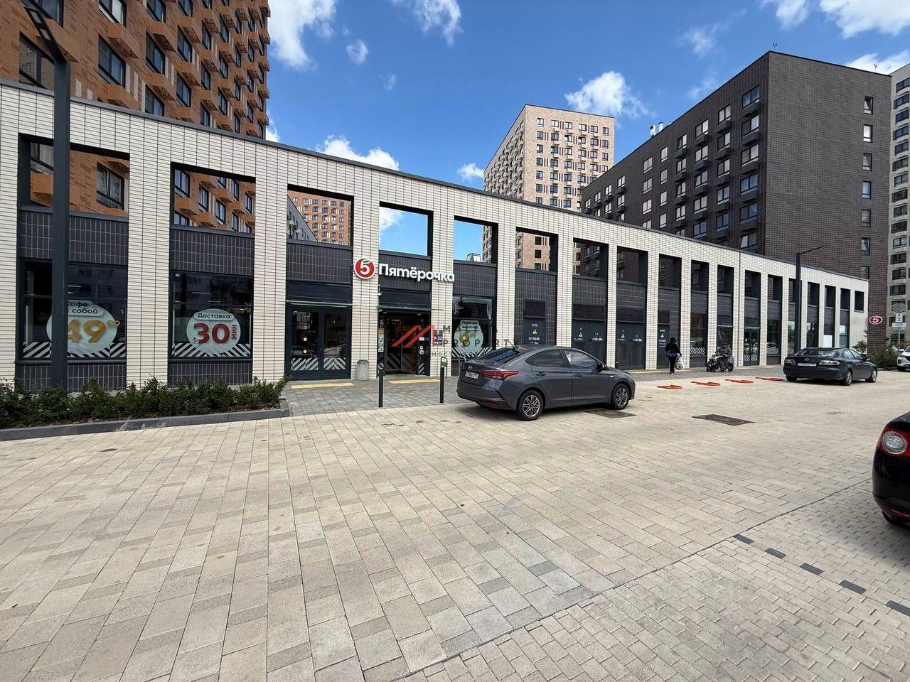 Помещение 433 м2, располагается на 1 этаже, стилобат между домами, открытая планировка, три отдельных входа, высота потолка 3,2 м, витринные окна по фасаду. Электрическая мощность 86 кВт. Парковка перед фасадом.