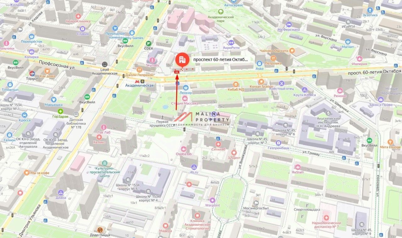 Продажа торгового помещения 53,8 м2 с арендатором "Мостабакторг" на ул. 60-летия Октября, д. 18 корпус 1 (1 минут пешком от м. Академическая). 1 линия домов.