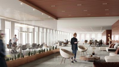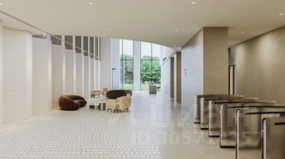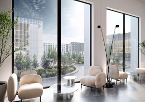 Премиальное лобби. Лаунж-зона. Здание спроектировано по принципу Healthy building.