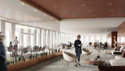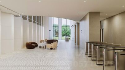 Премиальное лобби. Лаунж-зона. Здание спроектировано по принципу Healthy building.