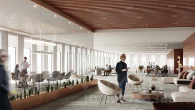Премиальное лобби. Лаунж-зона. Здание спроектировано по принципу Healthy building.