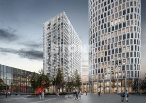 В двухуровневом стилобате разместится вся необходимая инфраструктура: торговые помещения, кафе, рестораны, столовая для сотрудников, аптеки, банкоматы, фитнес-центр.