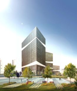Уникальная архитектура проекта - три офисные башни, объединенные единым стилобатом.