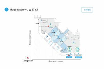 Продаётся готовый арендный бизнес! Помещение располагается на ул. Ярцевская д.27 корп.1 в шаговой доступности от метро "Молодежная" - менее 1 минуты пешком.