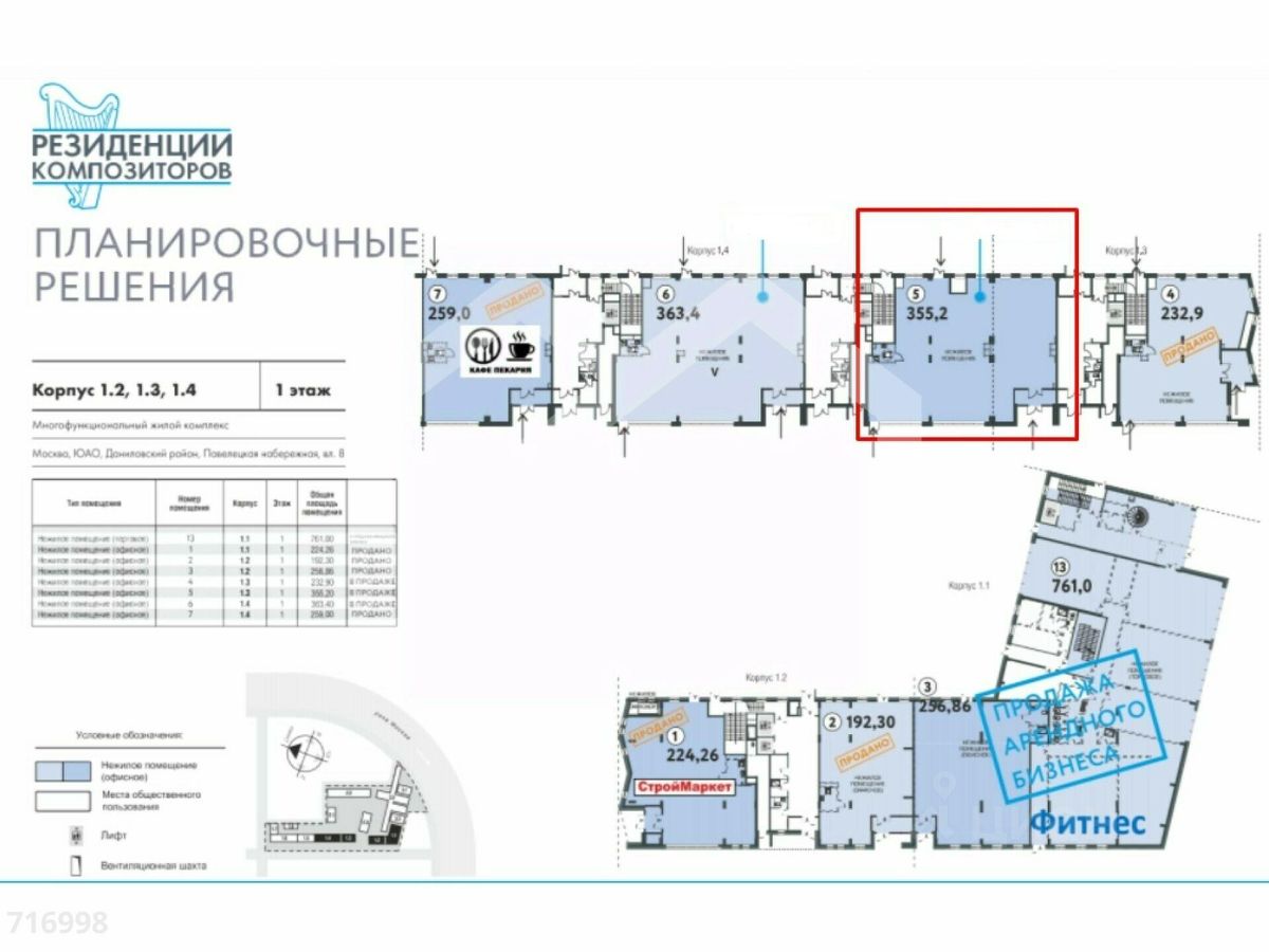 716998 . Предлагаем помещение свободного назначения формата Street Retail с арендаторами "Пятый Элемент" и Детский бассейн "Мама, я плыву", площадью 355,2 кв. м., расположенное на первом этаже жилого дома в ЖК "Резиденции Композиторов". Корпус 1. Без комиссии для покупателя.