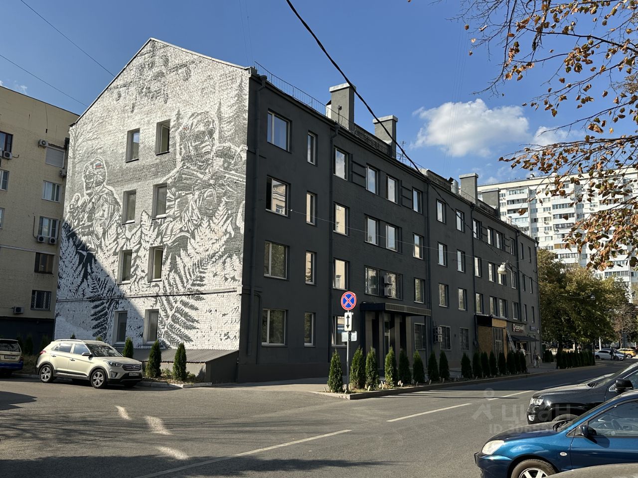 Расположено на первой линии, напротив центрального входа в Российский Государственный Социальный Университет