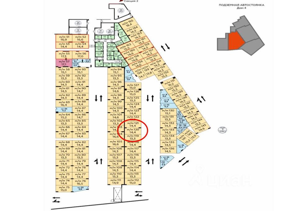 Продается парковочное место 120, площадью 14,4 кв.м. Расположено близко в выезду и лифтам