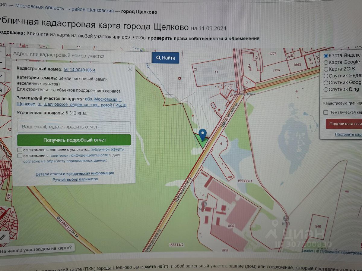 Продается земельный участок 6 312 кв.м. Кадастровый номер 50:14:0040105:4. Земли поселений (земли населенных пунктов) обл. Московская, г. Щелково, ш. Щелковское, рядом со спец. ротой ГИБДД Назначение придорожный сервис. Возможно поменять. Есть тех. условия на выезд на дорогу. Первая линия Щелковского шоссе. В собственности физ. лица более 8 лет. Не имеет запретов и ограничений.