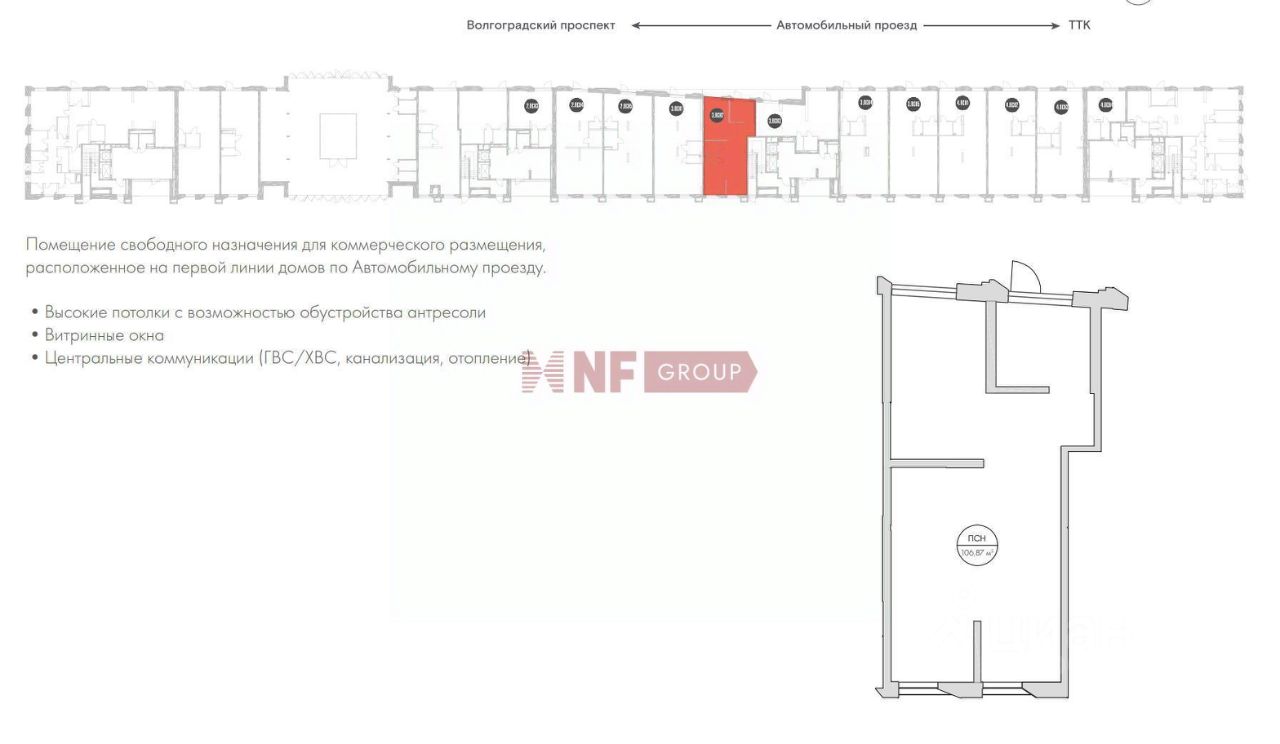 Торговая площадь в N'ICE LOFT расположена на первой линии Автомобильного проезда в ЮВАО, что обеспечивает высокий уровень видимости и доступности для клиентов. Это идеальное место для бизнеса, который стремится быть в центре внимания и привлекать постоянный поток посетителей.