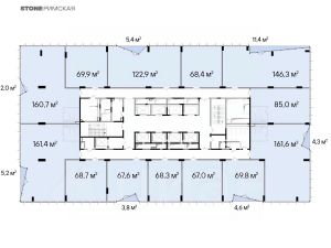 Планировки соответствуют требованиям функционального офиса: глубина помещения - до 10 м, высота потолков - 3,65 м, шаг колонн - 8,4 х 8,4 м, отделка Shell&Core. Окна в пол обеспечат оптимальный уровень инсоляции и предусматривают возможность естественного проветривания.
