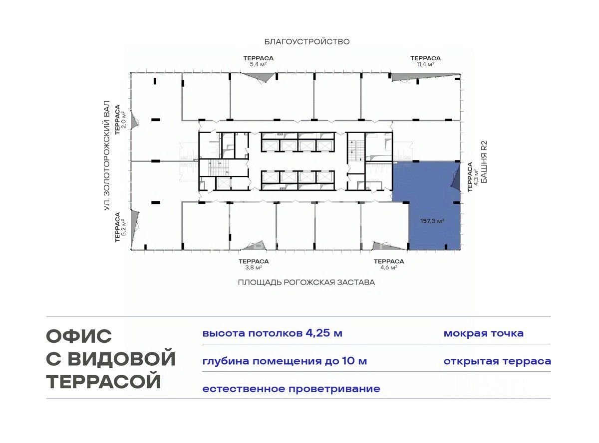 Видовые террасы и благоустроенная территория бизнес-центра предлагают не только удобные рабочие пространства, но и зоны для отдыха, где сотрудники смогут наслаждаться перерывами на свежем воздухе.