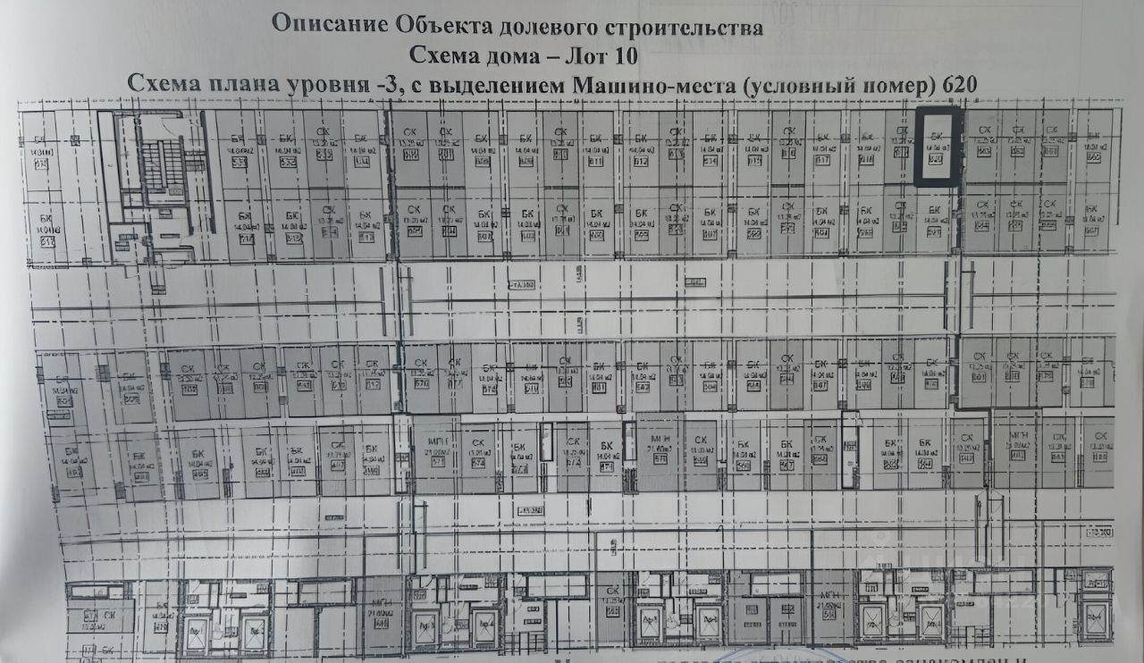 Машино-место на подземной четырехуровневой автостоянке ЖК "Зиларт" , лот 10, уровень -3. Площадь 14,04 м2.