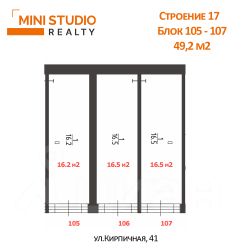 Продается складской блок из 3-х помещений с отдельными входами без пандусов и лестниц (безбарьерный вход). Лоты 105,106,107 на плане.