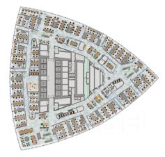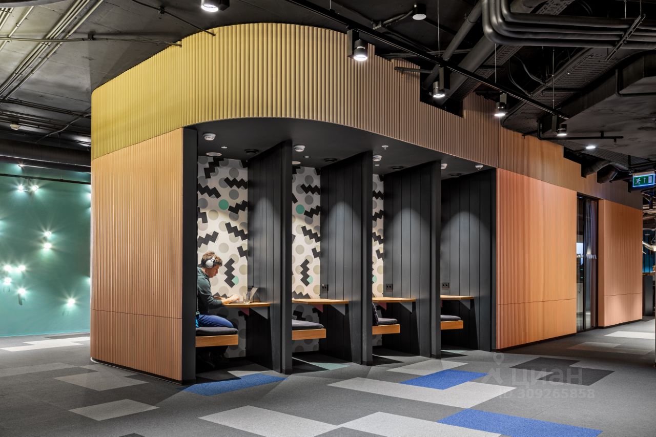 Планировкой предусмотрены кабинеты, общие рабочие зоны, переговорные, приватные скайповые кабины, зоны отдыха, кухни, серверные.