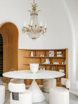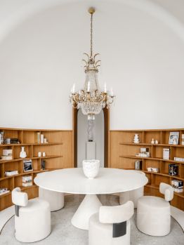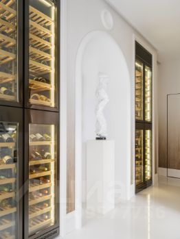 На первом этаже расположена зона отдыха с полноценной кухней, большим круглым столом и диваном. Два огромных винных шкафа. Санузел. На втором этаже расположены два кабинета, туалет с душем.