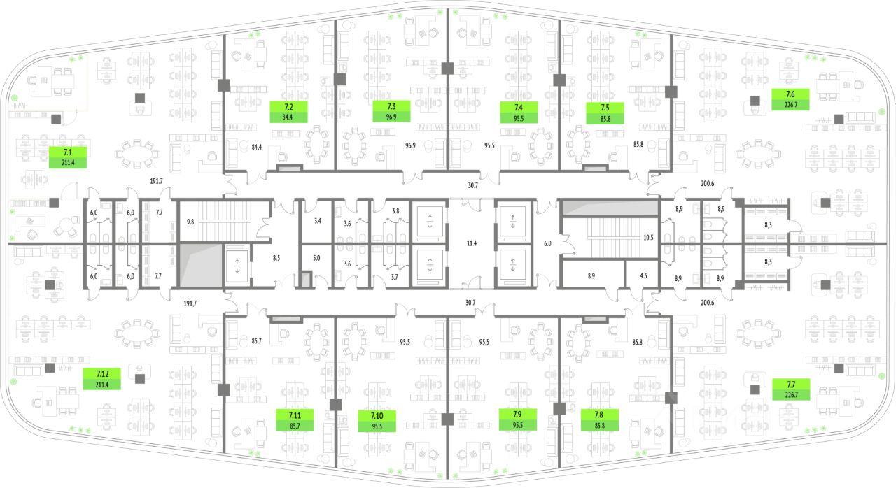 На сегодняшний день бизнес-центр распродан более чем на 70%, но в наличии есть имиджевые офисы нового поколения от 79 м² до возможности приобрести целый этаж.