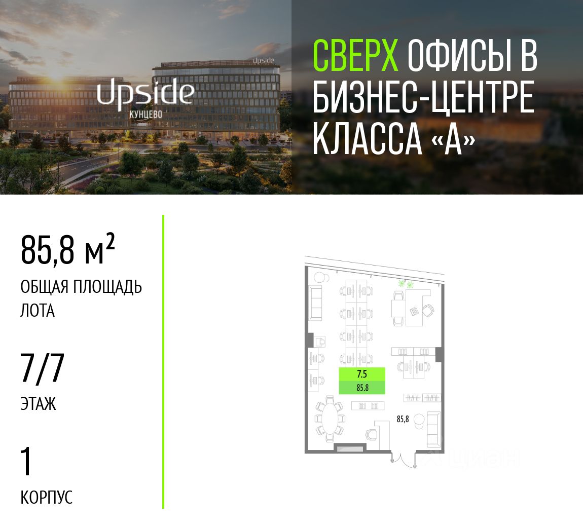 В продаже офисное помещение в строящемся бизнес-центре класса "А" Upside Кунцево. Ключи в ноябре 2025 года.
