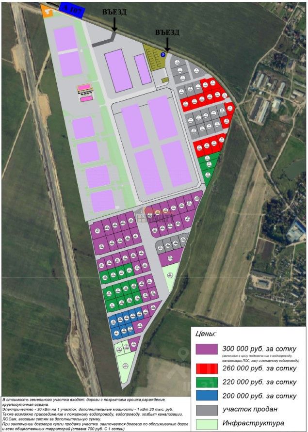 Комплектация с электричеством 150 кВт (возможно увеличение), Газ, ливневка, водопровод, противопожарный водопровод , дорога с твердым покрытием, КПП, охрана, ограждение. (Есть варианты с разными опциями).