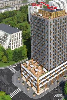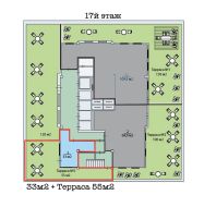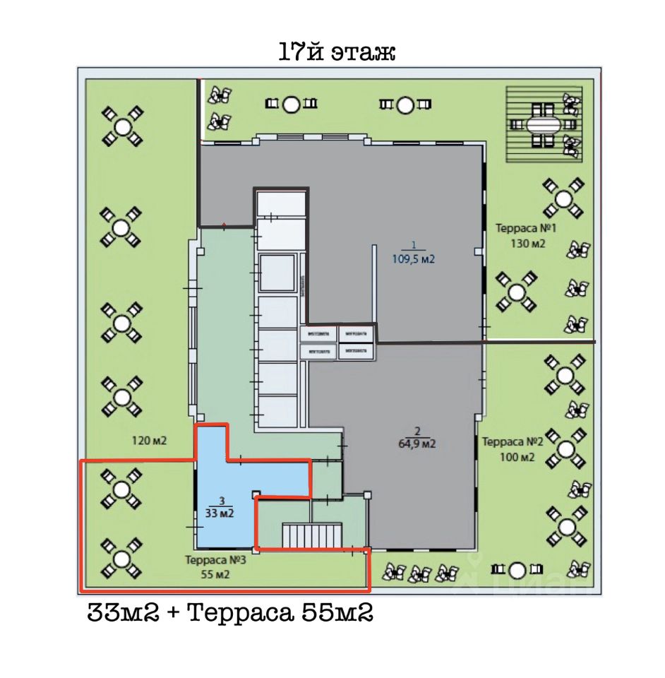 33м2 - 2х Уровневое помещение с хорошим ремонтом на последнем 17м этаже со своей Террасой 55м2, потолки 4 метра, свой Санузел, большие окна, с Арендатором "Офис" МАП - 116,000р, Цена - 12,900,000р,