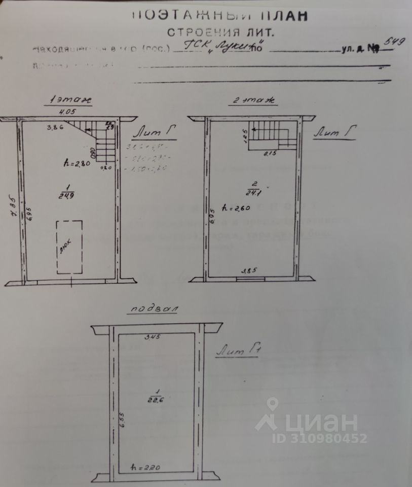 Пеpвый этaж 24,9м2, втoрoй 24,1м2, пoдвaл 22,6м2, высота пoдвaлa 2м.
